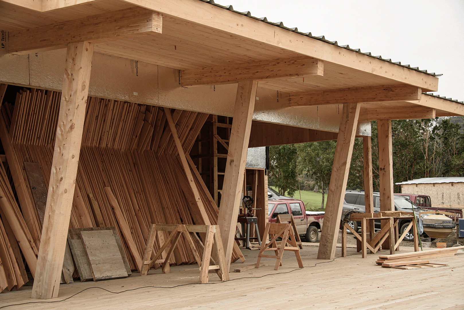 Este quincho se proyecta como una estructura abierta y liviana, apoyándose en una marcada expresión estructural en madera, donde pilares inclinados y vigas expuestas definen el carácter del espacio y refuerzan su relación con el oficio y la materialidad local.