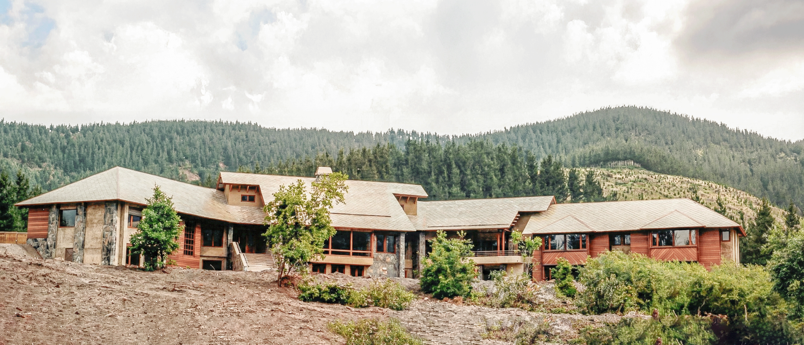 Esta casa de retiro de estilo rústico, destaca por el uso extensivo de materiales cálidos como la piedra y la madera en sus fachadas y grandes ventanales. Su estructura alargada y techos inclinados se asientan al pie de una montaña cubierta por un denso bosque de coníferas, ofreciendo un ambiente aislado, sereno y en estrecha conexión con la naturaleza.