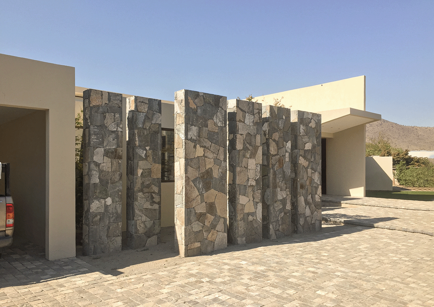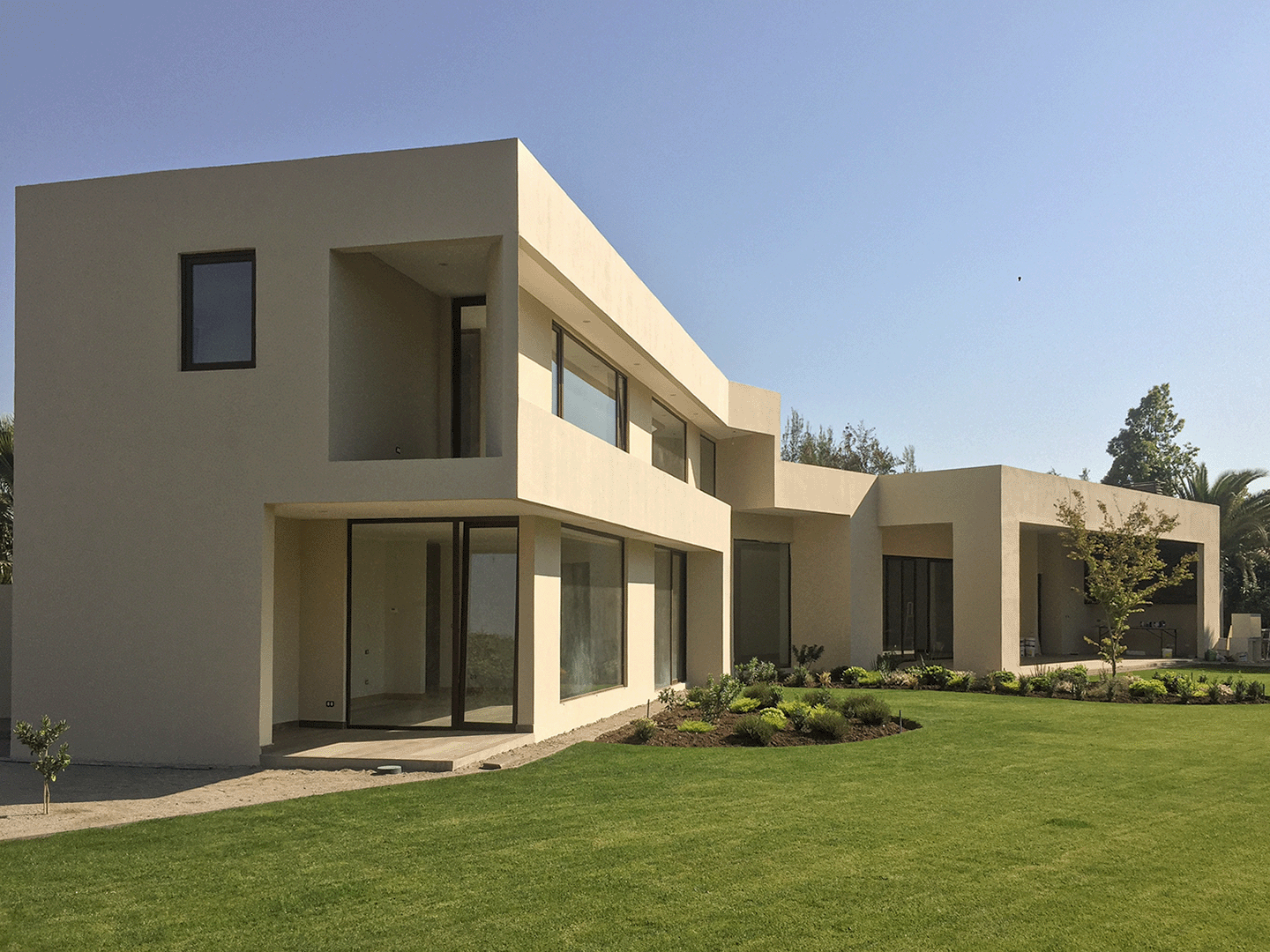 La casa se concibe como una estructura de gran luz, resuelta mediante paneles frigoríficos que permiten liberar el espacio interior y maximizar la continuidad visual. Su organización horizontal y la ausencia de apoyos intermedios generan recintos amplios, luminosos y abiertos al paisaje, reforzando una relación directa entre interior y exterior. La arquitectura se expresa con líneas limpias y volúmenes contenidos, donde la eficiencia constructiva se traduce en espacialidad, confort y vistas extensas hacia el entorno.