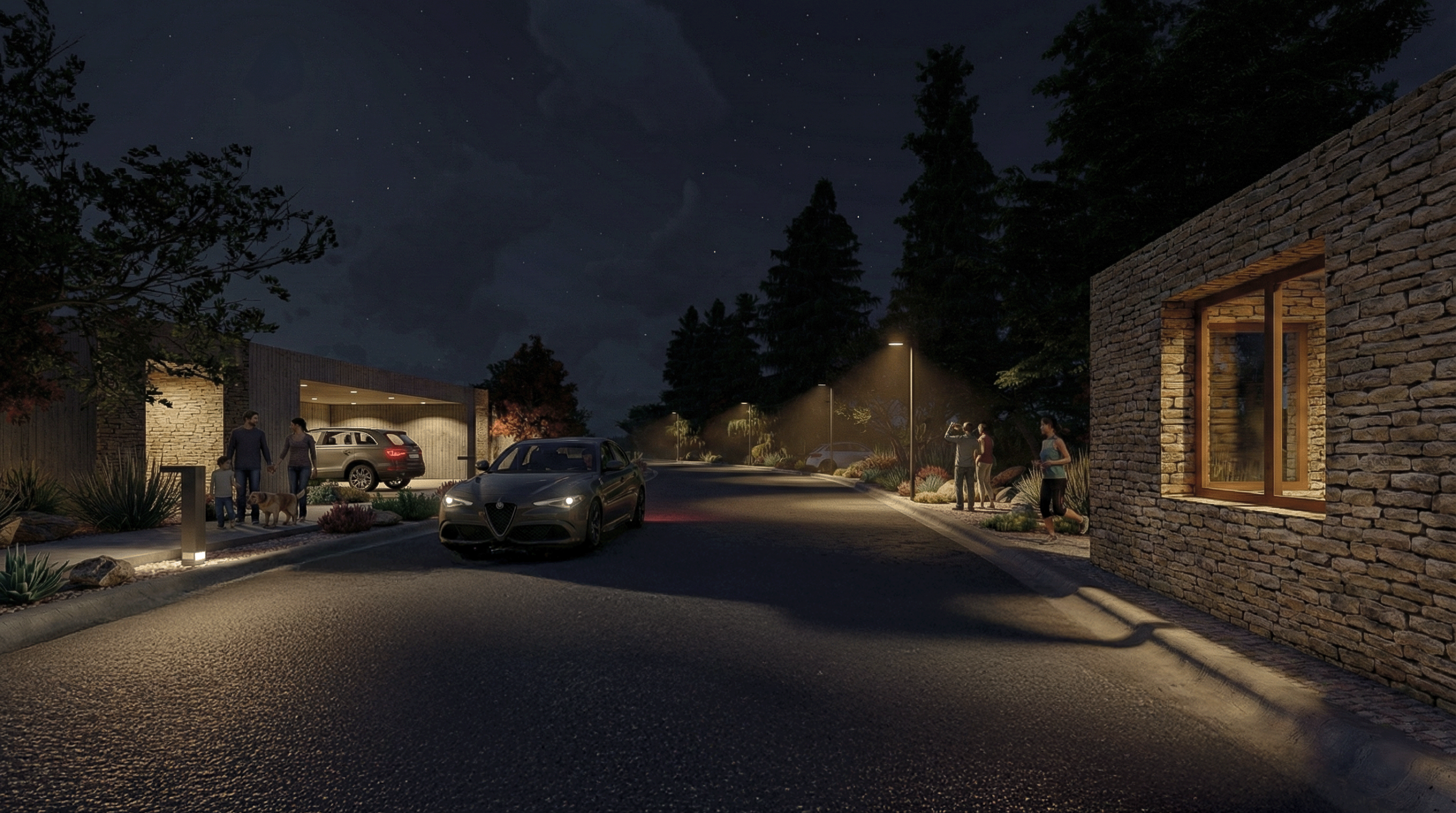 Este condominio tipo B en Lo Barnechea plantea una reestructuración sensible del espacio vial, buscando optimizar la calle para liberar la mayor cantidad posible de áreas verdes y espacios peatonales. A partir de un diseño controlado de flujos y bordes, se incorpora un cul-de-sac que cumple una doble función: operar como rotonda de circulación y, simultáneamente, convertirse en una pequeña plaza de encuentro para los residentes.