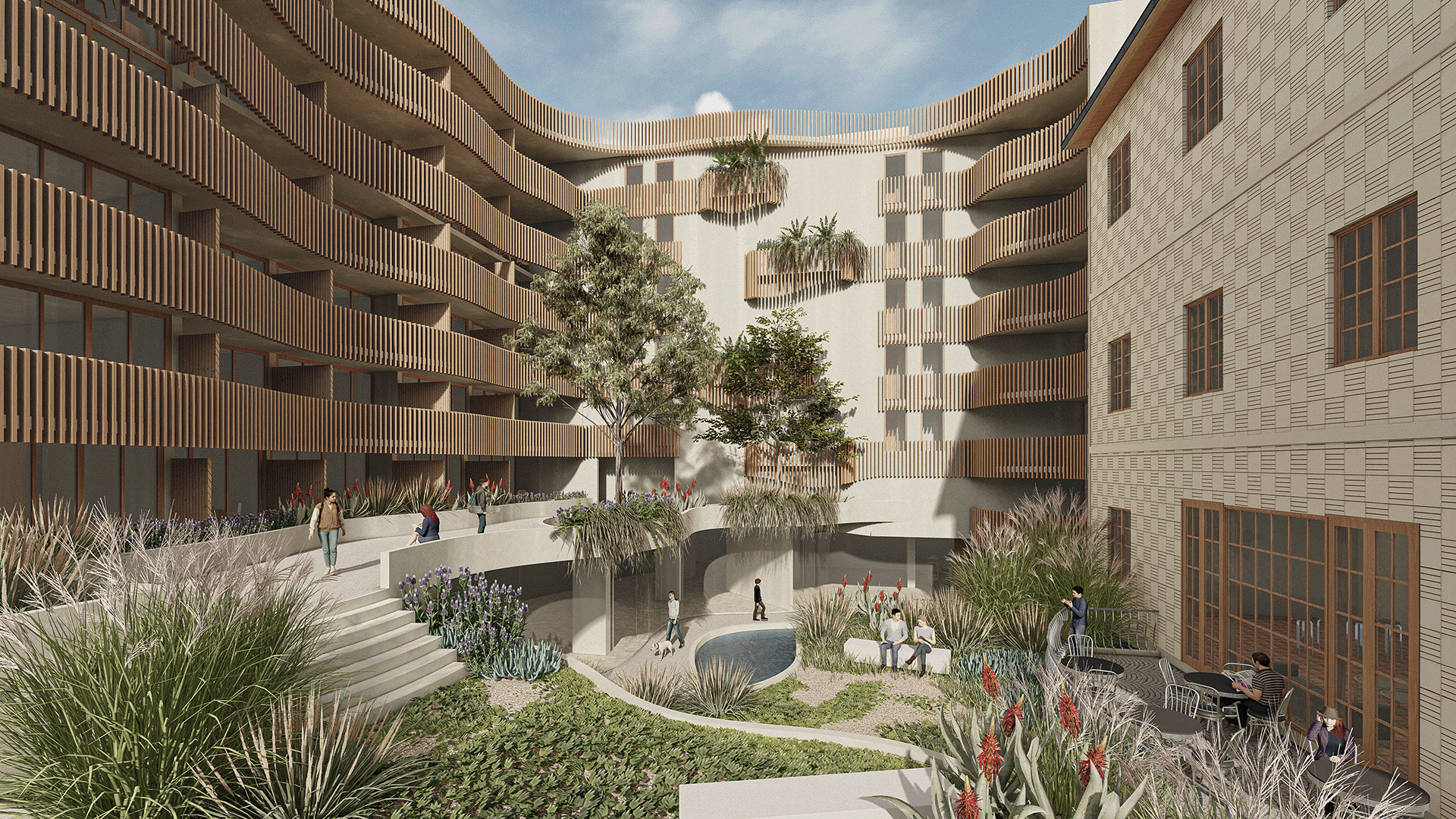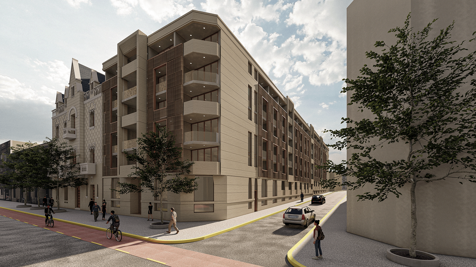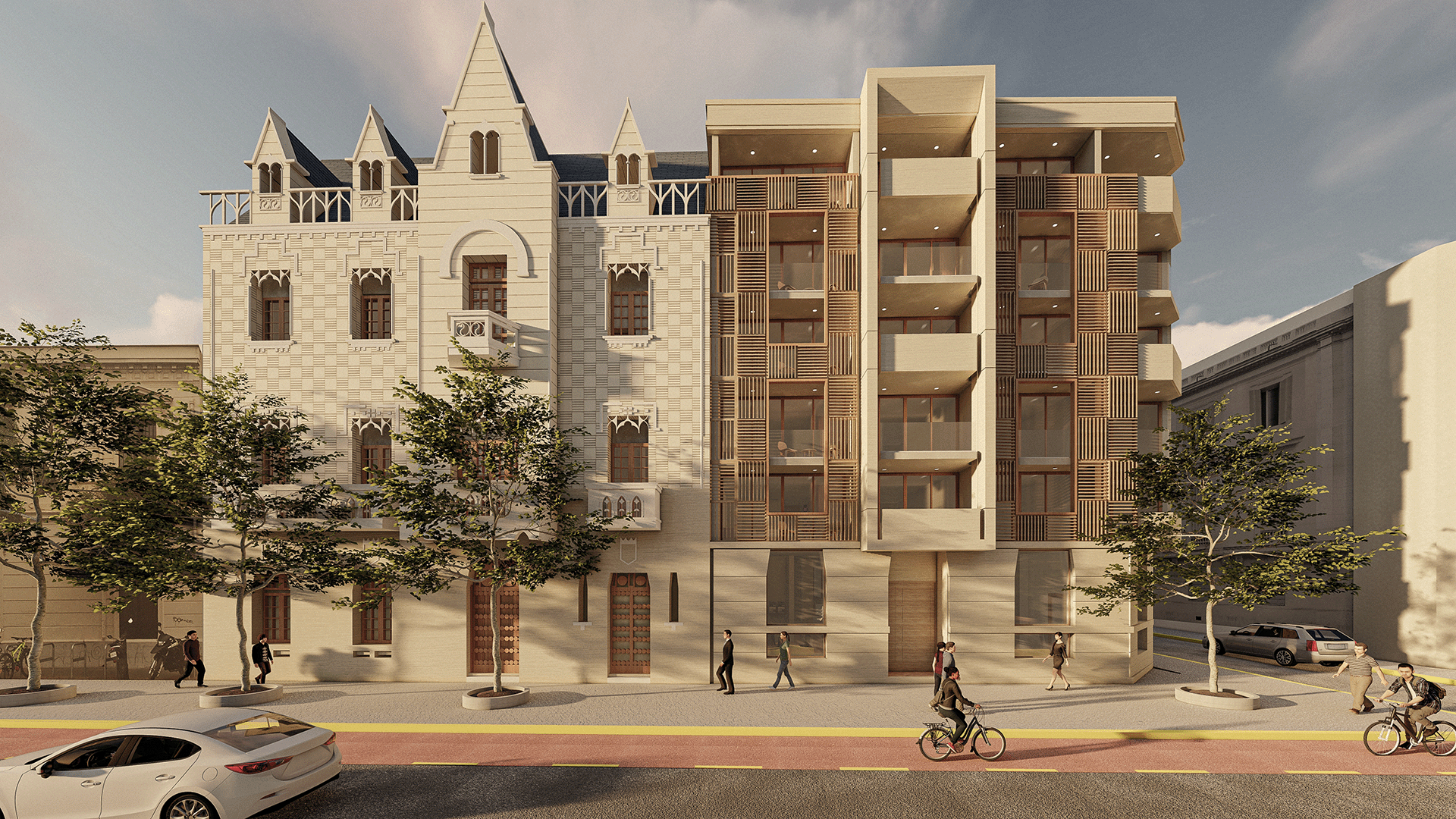 El proyecto basa su fundamento en rescatar la dualidad existente en las Casonas y Palacios del 1900, donde la fachada exterior es pública, hermética, formal y de materialidad pétrea, que rescata lo clásico. En contraste, el patio interior se abre a la naturaleza, la luz, el aire, con una materialidad orgánica, generando un ambiente más cálido y lúdico. Buscamos por este contraste generar un efecto sorpresa de quien entra en el edificio.