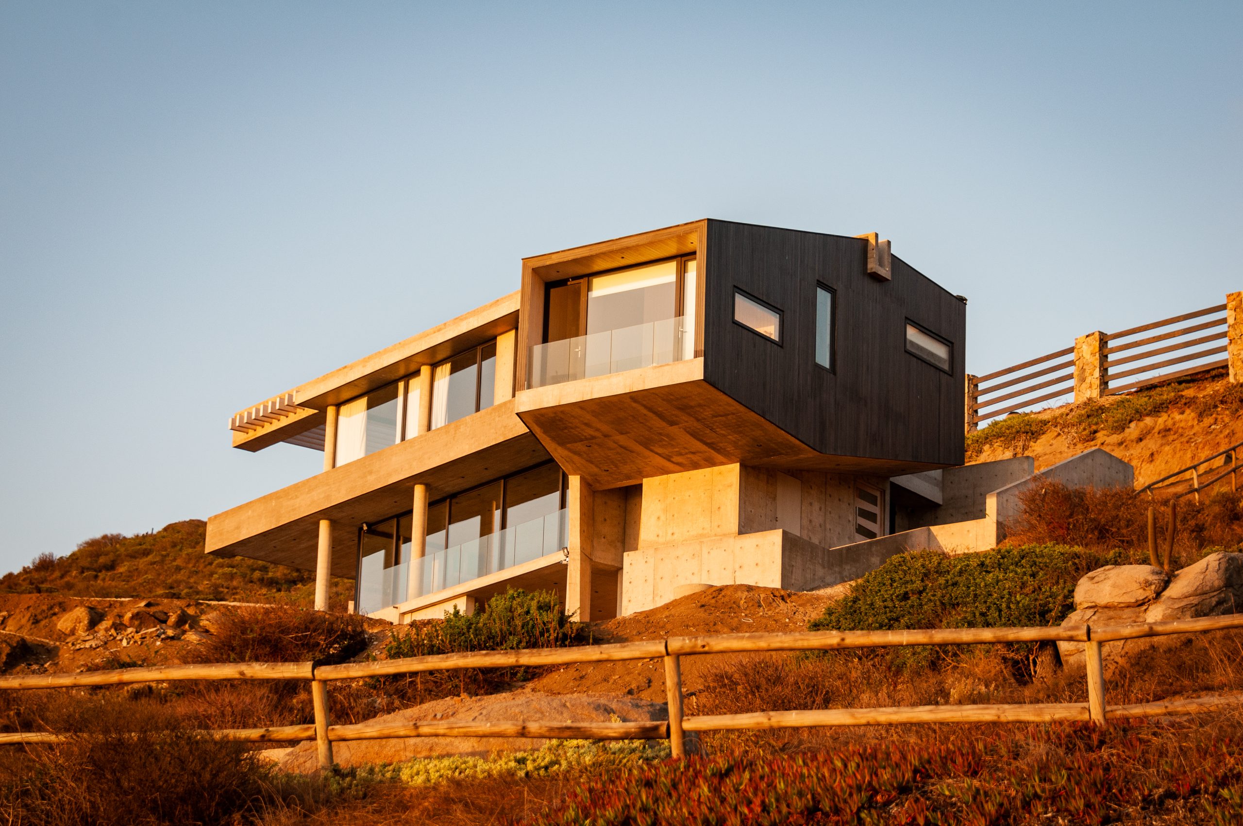 La casa se sitúa en el paisaje, contenido en la pendiente del terreno y privilegiando la vista al mar. Se busca una figura simple y reconocible, a partir de una viga U, que funciona como columna vertebral recogiendo todas las tensiones del proyecto.