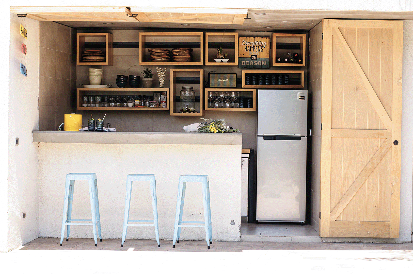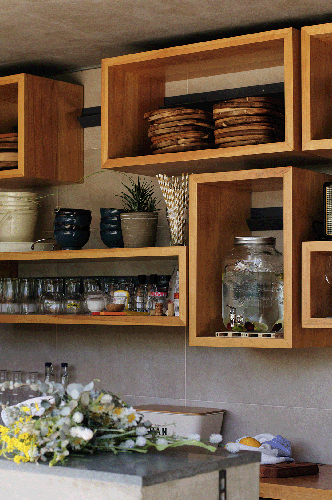 Para lograr un mejor aprovechamiento de este espacio reducido, se optó por un sistema de módulos intercambiables que se distribuyen libremente sobre los rieles de anclaje, donde cada uno de los objetos pasan a formar parte de la composición.